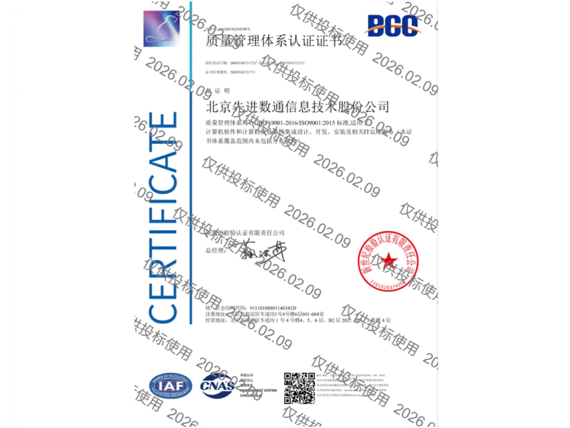 • ISO9001质量管理体系认证