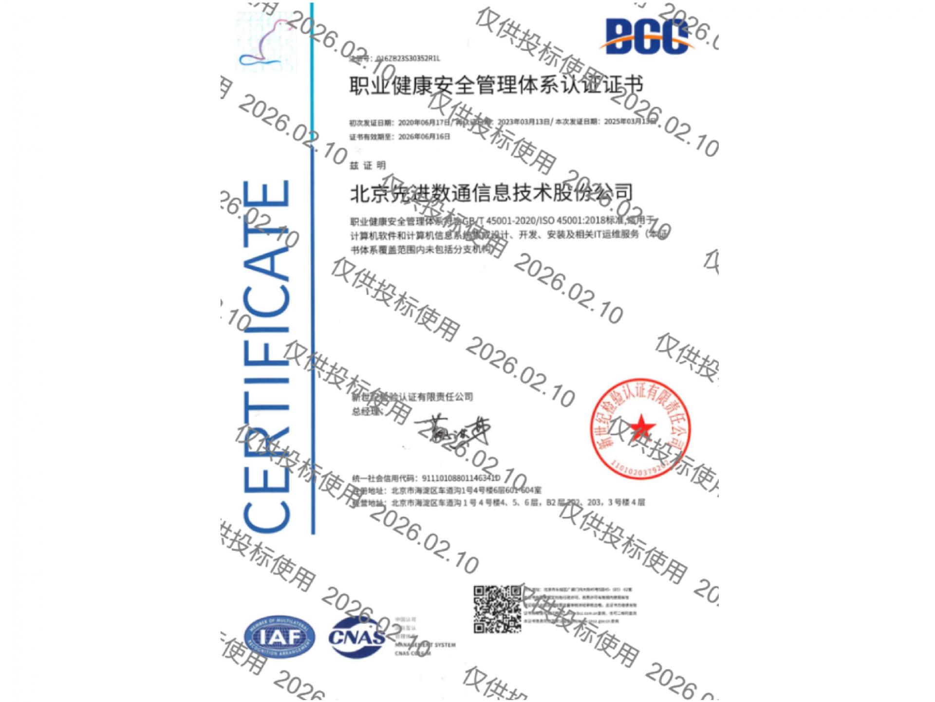 • ISO45001职业健康安全管理体系认证