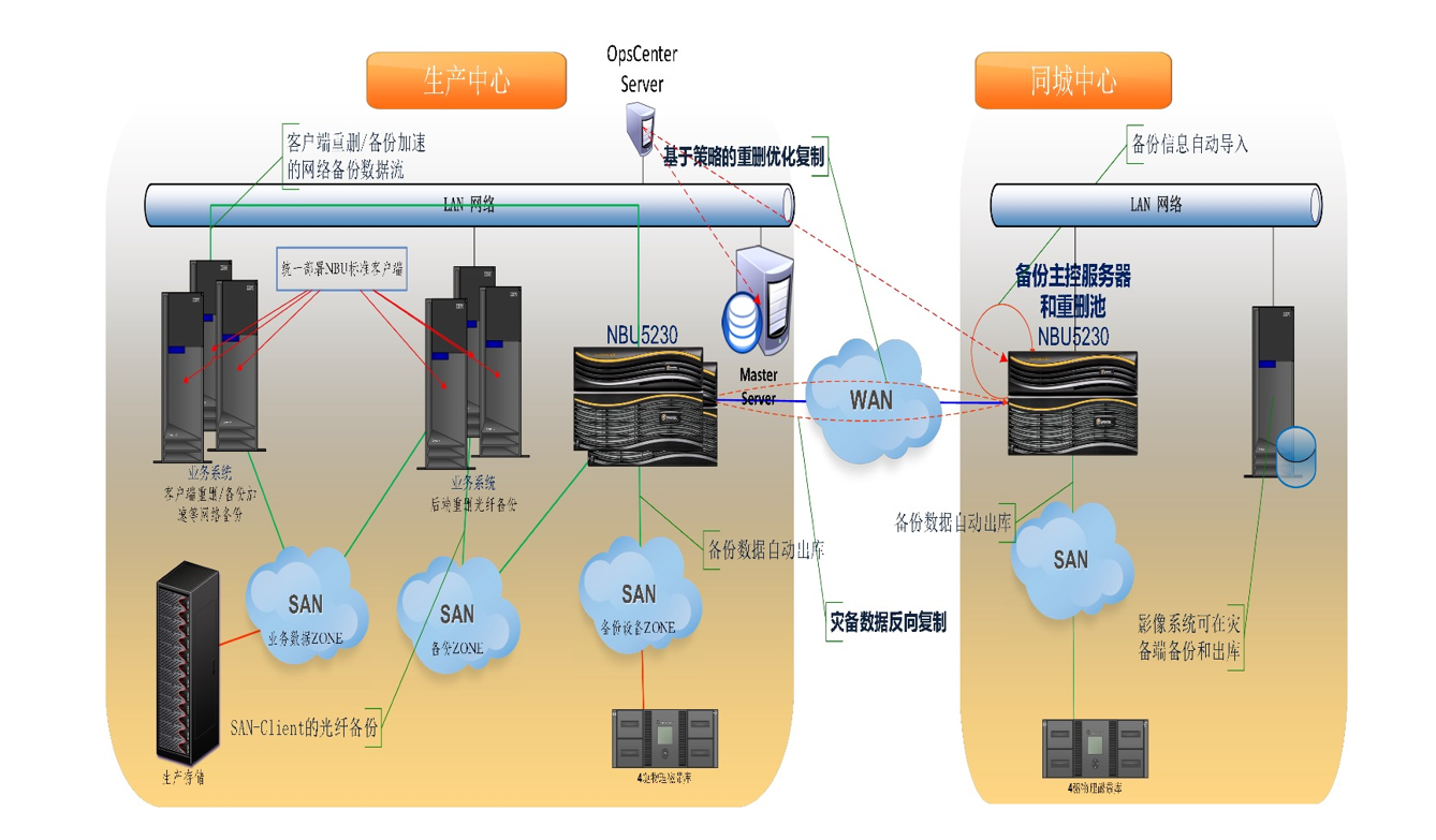 通过LAN/SAN网络,高效的备份和复制数据,确保能够实现备份数据及灾备数据的100%可恢复性